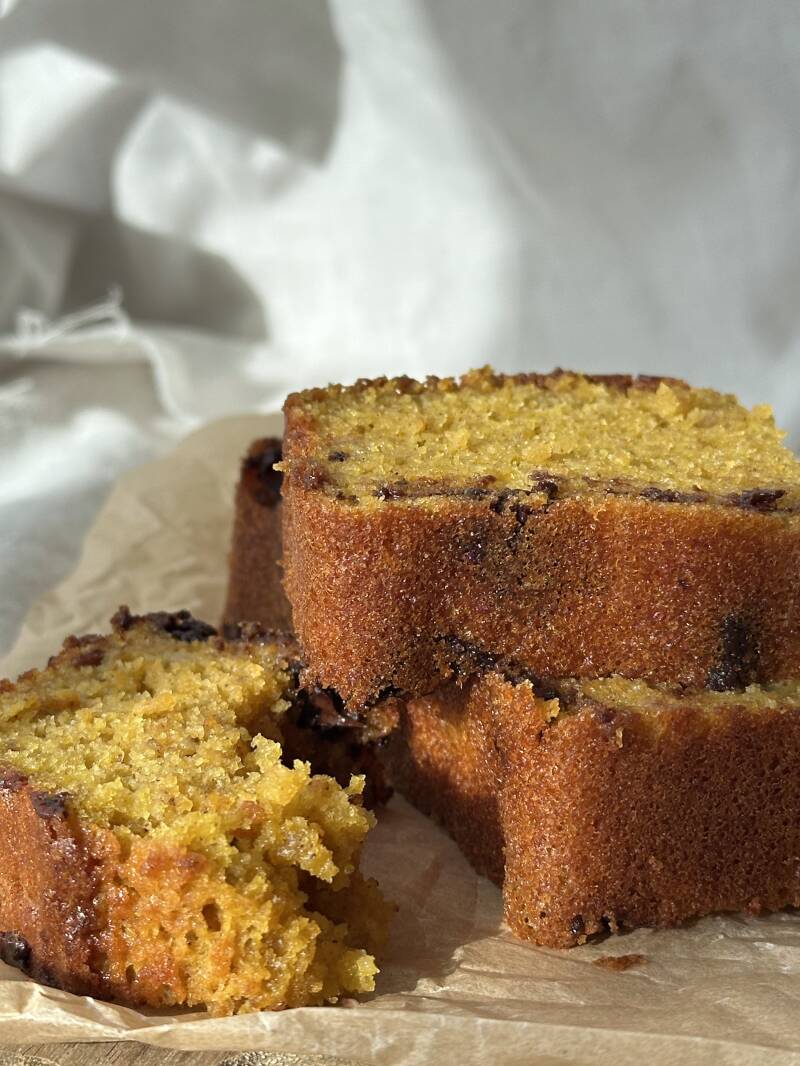 Saftigt og svampet brød med banan, græskar, brunet smør og chokolde, virkelig en lækker kombination, der er værd at prøve.