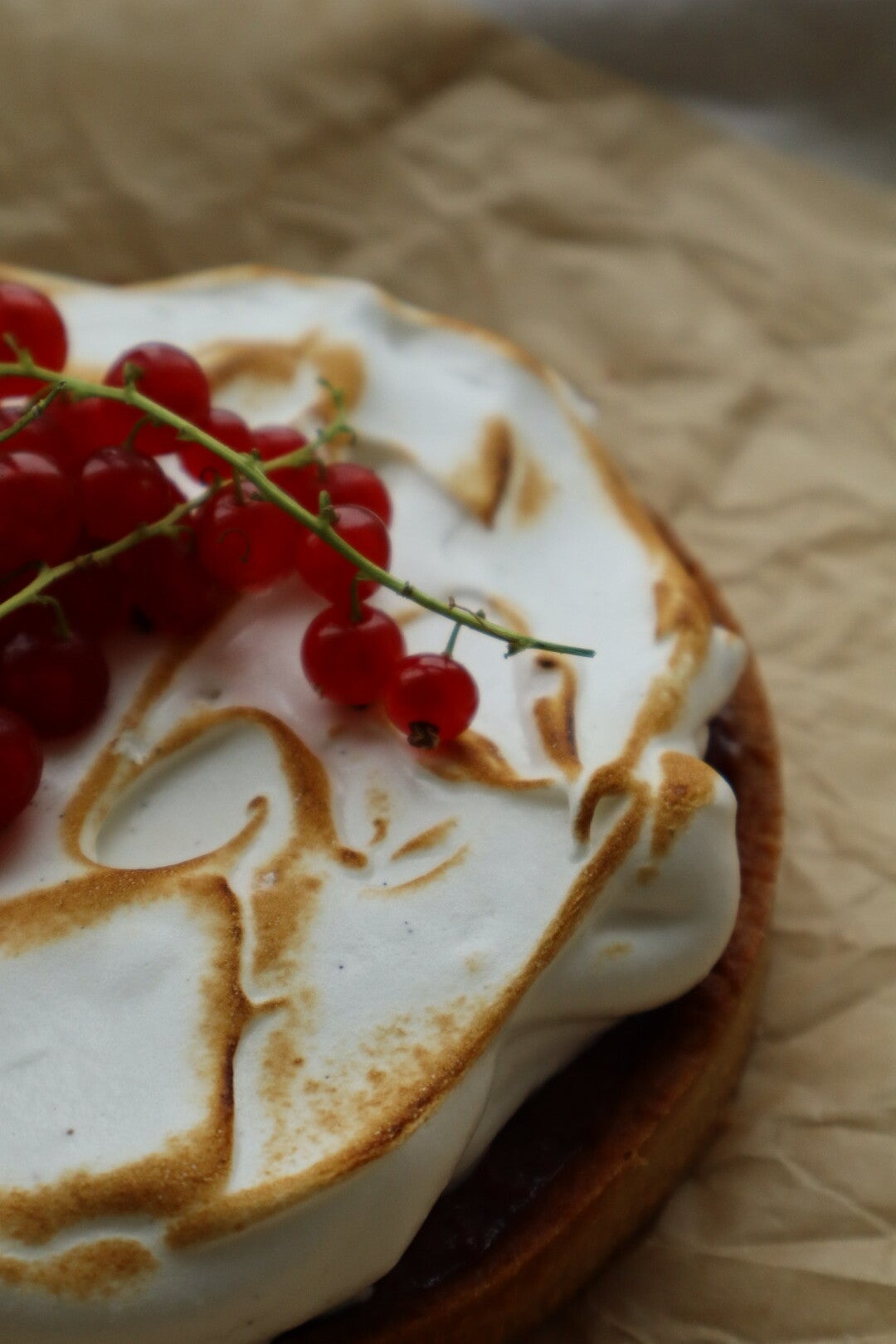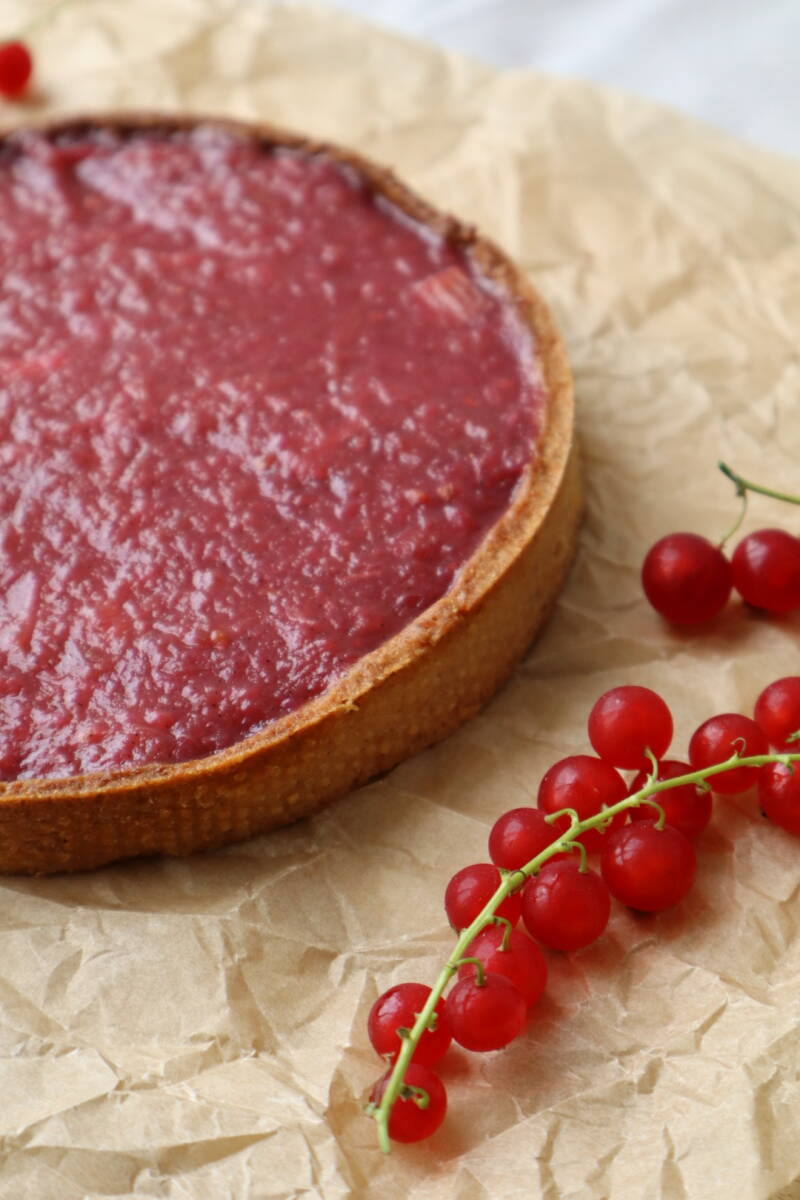 Tærte med rabarber, ribs, vanilje og brændt maregns. En tærte der smager af dansk sommer